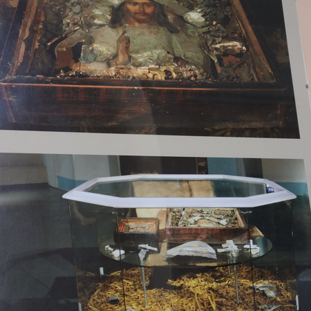 The exhibition was created based on materials from the joint project of the "Institute of Mass Information" and UNESCO, which are engaged in documenting and highlighting the damage inflicted by the Russian aggressors on cultural sites and objects in Ukraine. The goal of the exhibition is to demonstrate and inform the global community about the destructive consequences of the Russian full-scale invasion of Ukraine. In the eastern part of Kyiv Oblast lies the small village of Lukyanivka, with the first written mention dating back to 1635. Before the full-scale invasion by Russian occupiers on March 1, 2022, its pride and guardian was the 19th-century Church of the Ascension, a monument of a Ukrainian wooden architecture. The church was built in 1879, using for its foundation bricks from the first church constructed in 1758. Every year in Lukyanivka was traditionally held a celebration in the church, during which flags and the large icon of the Holy Virgin Mary were carried in a church procession so the village was circled to create a spiritual defensive barrier against invaders. While most of these customs have faded into the past, the genetic memory of the people persists. It encapsulates the essence of the church festival – a protection against malevolent forces and mobilizes the residents to be united against enemies. When the occupiers realized that the source of the villagers' defiance and indomitable spirit lay within the church, on the evening of March 24, 2022, they fired upon the Church of the Ascension from a tank at close range. The wooden church turned to ashes, but the main objective – the destruction of the spiritual center of the village's residents, was not achieved by the occupiers. On the contrary, the raging fire became a catalyst for finding extra strength for a resolute counterattack, and on March 26, the aggressors were driven out of the village. Despite the scale of the battle, the protective mission of the spiritual center fulfilled its role: three Ukrainian Armed Forces soldiers and one local resident lost their lives, although the casualties could have been incomparably higher. During the opening of the exhibition the Mukachevo and Carpathian Bishop, governing the Mukachevo-Carpathian Eparchy of the Orthodox Church of Ukraine, the Right Reverend Viktor Bedj was saying: «Volodymyr Norba has been long and tirelessly organizing unique photo exhibitions, including those that shed light on the multifaceted aspects of the history of Ukrainian spiritual culture. In this spiritual dimension, the role of the Ukrainian Church is highly significant. And this is understandable. After all, the Ukrainian religious revival and construction within our state's territory are unfolding very successfully. The spiritually barren Rashist and Putinist is simply powerless before it. He can only demonstrate that he holds no value for any spiritual principles, which he can trample with his aggressive boots, displaying his plebeian disdain for other lives, nations, and states, particularly in Ukraine, where the bloody Russo-Ukrainian war of 2014-2023 is currently raging. In its fire, they want to burn even the foundations of the Universal Church. The exhibition of the master of photographic art, Volodymyr Norba, comprehensively showcased the crimes of the occupation by the godless Moscow-Putinist regime against humanity, mankind, spirituality, the Ukrainian people, the State of Ukraine, and the Ukrainian Church, showing contempt for everything Ukrainian. Therefore, the photographic artist Volodymyr Norba has excellently documented the fact of the malicious crime and the sneer of the godless Moscow henchmen». The refrain, given by the Right Reverend Viktor Bedj, have supported in their speeches Oleksii Kindrat, the head of the Public Council of the Transcarpathian Regional State Administration and Maryna Dub, rector of the Augustyn Voloshyn Carpathian University. Autor of the exhibition, Volodymyr Norba, is grateful for the assistance in creating the reportage to Volodymyr Bondar, the village elder of Lukyanivka, Pavlo Lysenko, the priest of the Orthodox Church of Ukraine, Ihor Krepak, the director of the Brovary Local Lore Museum and to the staff of the National Museum of History of Ukraine in World War II. The exhibition will last till October 18th, 2023.