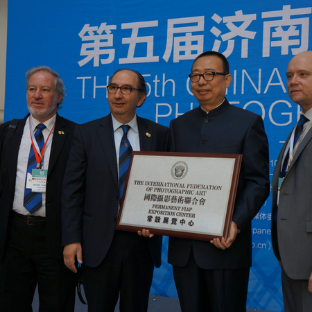Opening Ceremony of the Fourth FIAP Permanent Exhibition Centre (Photographic Society of Confucius Hometown) , in presence of the Director of the Shandong University of Art and Designe Prof. PAN LUSHENG, the President of the Art Gallery of Shandong University and now Director of the FIAP Permanent Exhibition Centre Prof. Zeng Yi, the Director of the Permanent Exhibition Center of Oman, Mr. Ahmed Al-Busaidi and the Director of the Permanent Exhibition Center of Turkey, Mr. Reha Bilir and the responsible of the Chinese Photographers Association.