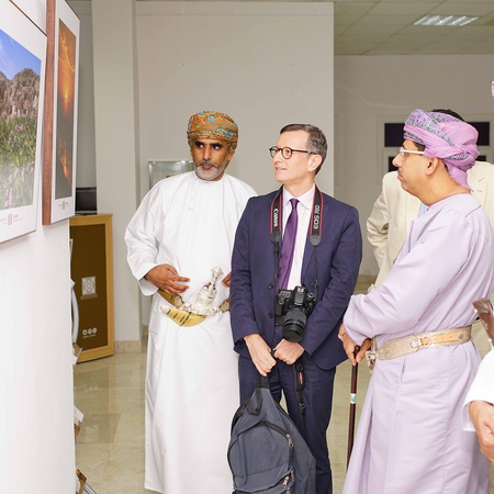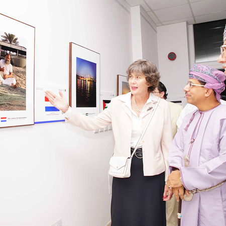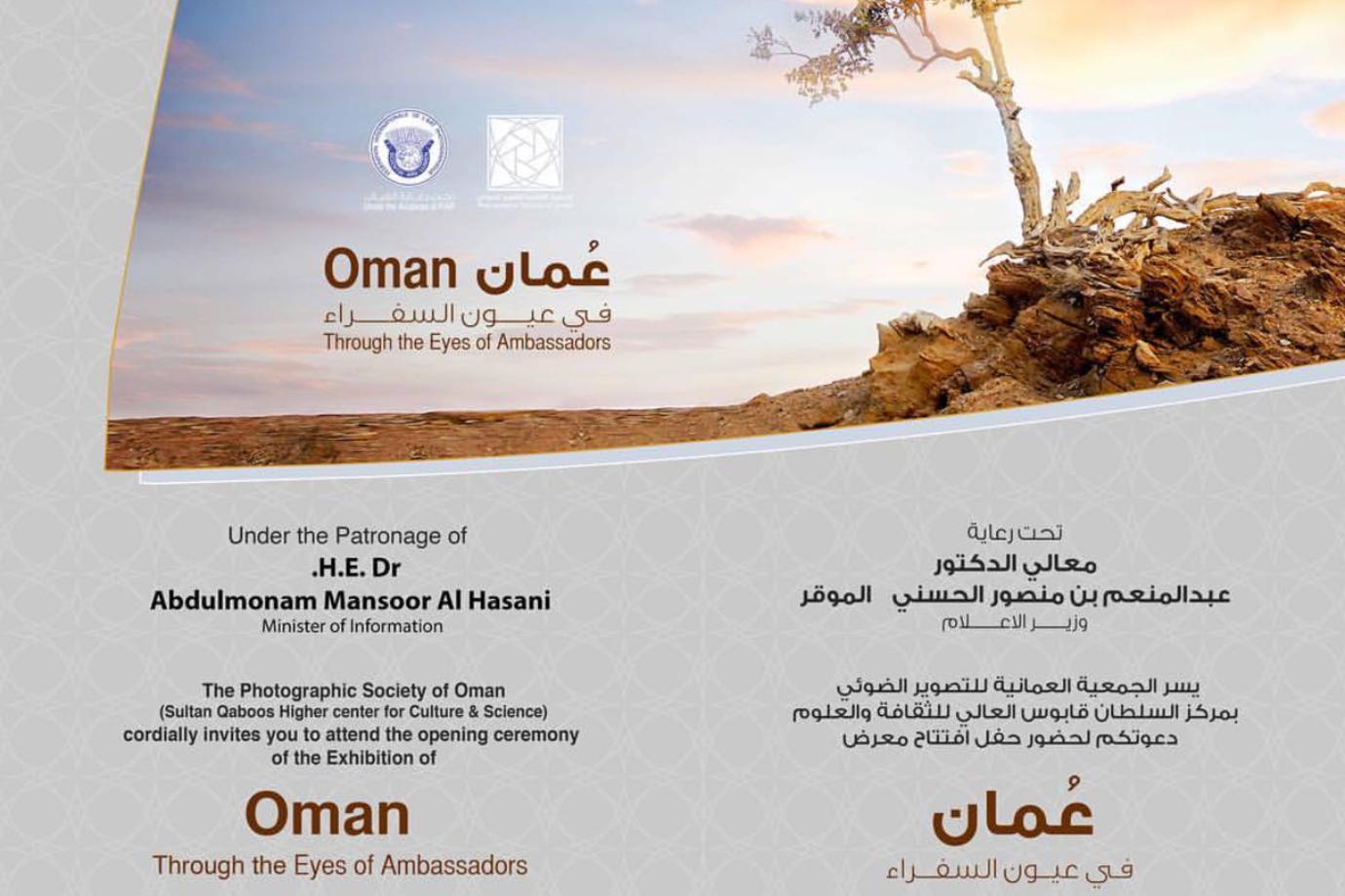 Under the patronage of H.E Dr. Abdulmonam bin Mansoor Al Hasani, Minister of Information, opened the exhibition Through the Eyes of Ambassadors opened at the Photographic Society of Oman. The exhibition in its fourth year renewed the artistic encounter with the lenses of the ambassadors of the world in the Sultanate, so that the photo will be a message of love, peace and brotherhood among the peoples. There were (38) story of light that recounts the details of beautiful Oman that captures the hearts and inspires the eyes and dazzles each artist by its natural nature, ancient heritage, authentic culture and modern development. (22) Photographers participated from Brazil, the United Kingdom, Egypt, France, India, Iraq, Jordan, Holland, Palestine and Turkey.
