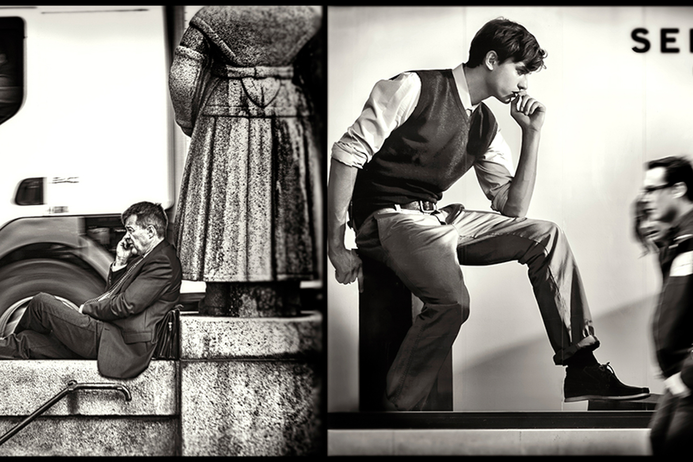 The artist offers us a collection of black and white photographs where the images seem to have found their perfect match to convey an idea or concept that sometimes seems clear, but whose meaning always lies in the imagination and thoughts of those who view them. Dual compositions can create visual and emotional tension, encouraging the viewer to reflect on the ideas and concepts being explored.