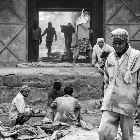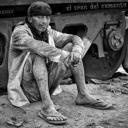 Su trabajo consistíaen cargar y descargar los sacos de cemento que continuamente llegan a esa estación. Descargan esos materiales como animales de carga, sin nada que les proteja, sin ropa adecuada, sin calzado, sin mínimas condiciones de seguridad. Sólo vale su esfuerzo y la realización del trabajo diario por el que cobran apenas 50 rupias ( menos de un euro al día) y desde que amanece hasta que se pone el sol.