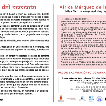 Mi exposición “ El Tren del cemento”, narra la historia de un lugar, de un espacio en una de las ciudades más importantes de India: Agra, donde el destino me llevó por casualidad, donde paramos el vehículo que nos transportaba y donde descubrí, a un grupo de personas que trabajaban en aquel lugar.