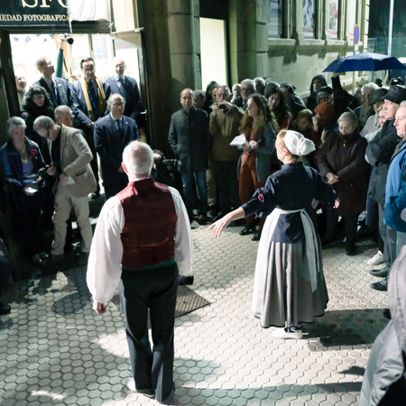 Before viewing a FIAP sponsored video “Women Lifecycle” and presentation of the book “Destino Soñado” by the 2018 national CEF photography prize winner, Asier Garagarza, and writer Xabier Ortiz, attendees enjoyed an Aurresku (a local Basque dance greeting) under an intense sirimiri (our almost ever-present San Sebastian rain). Being the eve-of-the-eve of ´San Sebastian´ (highlight of the local festival calendar) the evening would not have been complete without a Tamborrada, presented with Basque passion by a group of club members.