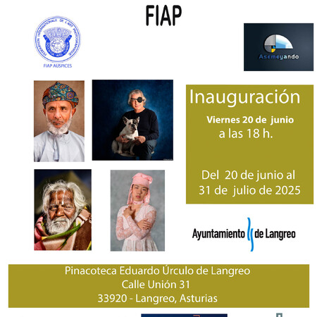 CE FIAP Llangreu Semeyes del Mundu / Fotos del Mundo del 20 de junio al 31 de Julio. Gracias a la colaboración con el Centro expositivo de Reus hemos podido presentar esta muestra de cuatro maestros FIAP, y además contar con la presencia de Paul Stanley y Hellen del Centro Expositivo FIAP Dublin Camera Club en la inauguración de la muestra. Cuatro fotógrafos que en 2014 recibieron el título de Maestro de la Federación Internacional del Arte Fotográfico, MFIAP, su máximo reconocimiento fotográfico, seis años después se unen para crear esta exposición. El retrato es el tema común que utilizan en esta exposición, cada uno con su estilo propio y bien diferenciado. Las imágenes nos permiten adentrarnos en la obra de estos autores que nos trasmiten su manera de ver y de observar a través de la cámara. En unos casos nos muestran unos retratos inspiradores y evocadores de momentos vividos en impresionantes viajes y en otros casos nos muestran retratos creados meticulosamente en estudio. Gràcia de la Hoz nos muestra sus retratos de personas cotidianas que modela con la luz de estudio. Javier Fernández Ferreras aporta sus retratos realizados en el año 2019, en la celebración del Khumb Mela en Allahabad (India), la mayor concentración humana del mundo, de carácter religioso, en la que se congregan 100 millones de peregrinos a orillas del Ganges cada tres años, en cuatro ciudades santas para la religión hindú. Luis Alberto Franke nos muestra retratos con los atuendos típicos de Omán, mujeres con vestidos coloridos y pañuelos sobre sus cabezas y hombres con turbantes y túnicas sin cuello. Frederic Garrido Vilajuana sus retratos son una representación simbólica del color junto con la mirada atemporal. CE FIAP Llangreu Semeyes del Mundu / Fotos del Mundo from June 20 to July31. Thanks to the collaboration with the Reus Exhibition Centre we have been able to present this exhibition of four FIAP masters, and also to have the presence of Paul Stanley and Hellen from the FIAP Dublin Camera Club Exhibition Centre at the opening of the exhibition. Four photographers who in 2014 received the title of Master of the International Federation of Photographic Art, MFIAP, its highest photographic recognition, six years later come together to create this exhibition. Portraiture is the common theme used in this exhibition, each with its own distinct style. The images allow us to delve into the work of these authors who transmit their way of seeing and observing through the camera. In some cases they show us inspiring and evocative portraits of moments lived in impressive journeys and in other cases they show us portraits meticulously created in studio. Gràcia de la Hoz shows us her portraits of everyday people that she models with studio light. Javier Fernández Ferreras contributes his portraits made in 2019, at the celebration of the Khumb Mela in Allahabad (India), the largest human concentration in the world, of a religious nature, in which 100 million pilgrims congregate on the banks of the Ganges every three years, in four holy cities for the Hindu religion. Luis Alberto Franke shows us portraits in typical Omani attire, women in colorful dresses and scarves over their heads and men in turbans and collarless tunics. Frederic Garrido Vilajuana's portraits are a symbolic representation of color along with the timeless gaze.