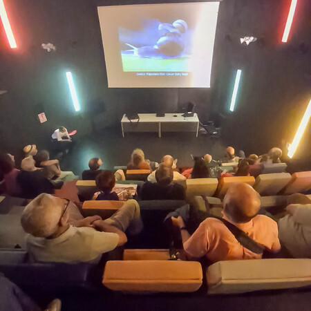 In the month of July we have proceeded to expand the collection of cameras of the City Council of Langreo, located in the Felgueroso de Sama cinema, with the temporary exhibition of Corsino Fernández that shows important cameras and historical photographic objects. Corsino gave us a presentation of the exhibition and a lecture on the "camera obscura" and its artistic and historical importance. We were also able to see the presentations of Pablo Fernández "Guardians of the sea" and Pedro Gutiérrez "dreams of Finland". As a culmination of the day, the audiovisual FIAP MMS MICROCOSM was presented, which was highly valued by the large audience present.