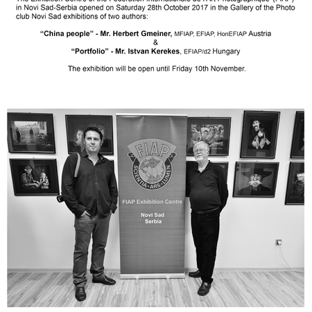 The Exhibition Centre of the Fédération Internationale de l’Art Photographique’ (FIAP) in Novi Sad-Serbia opened on Saturday 28th October 2017 in the Gallery of the Photo club Novi Sad exhibitions of two authors: