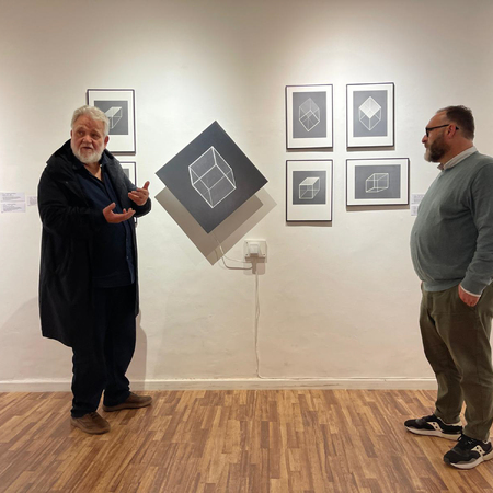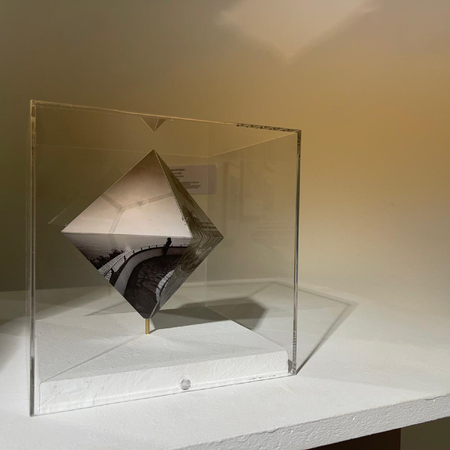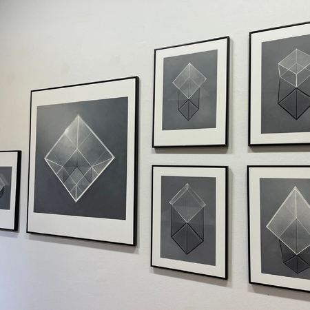 (Marginal Reflections, Minimalism) The photographs in this exhibition evoke the methacrylate or glass boxes used to protect objects exhibited in museums or exhibition halls, as well as the marginal reflections that are generated. If we look at the drawings generated by the lights and shadows projected by the transparent cubes or hexahedrons, primary modular geometric structures appear. These unwanted reflections are an inherent part of the presentation of the works of art themselves, encompassing a space that goes beyond the objects. When making the images, everything extraneous to the objectives sought has been eliminated, achieving maximum simplicity and giving rise to what is known as the minimalist artistic movement. To create these images, the positioning of the cubes with respect to the light source, the point of representation or view, the angle of view and the position of the projection plane have been modified.