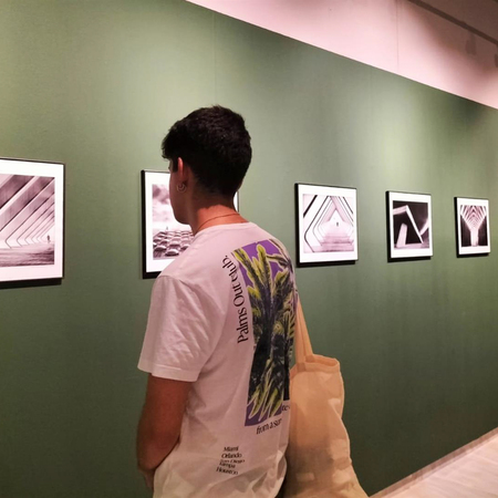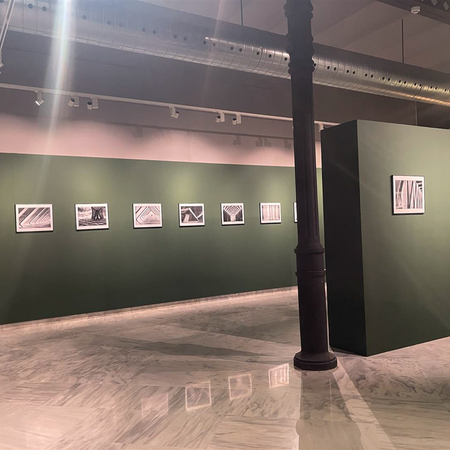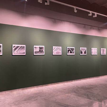 The insignificance of man. The architectural spaces, in a game of lights and shadows, form an almost surrealistic decoration. Pure black and white images in which architecture photography begins to take on abstract forms, reinforced by the seemingly disproportionate addition of man. Constructions and shapes, lines and photographed surfaces provoke a strong contrast with the insignificance of man.