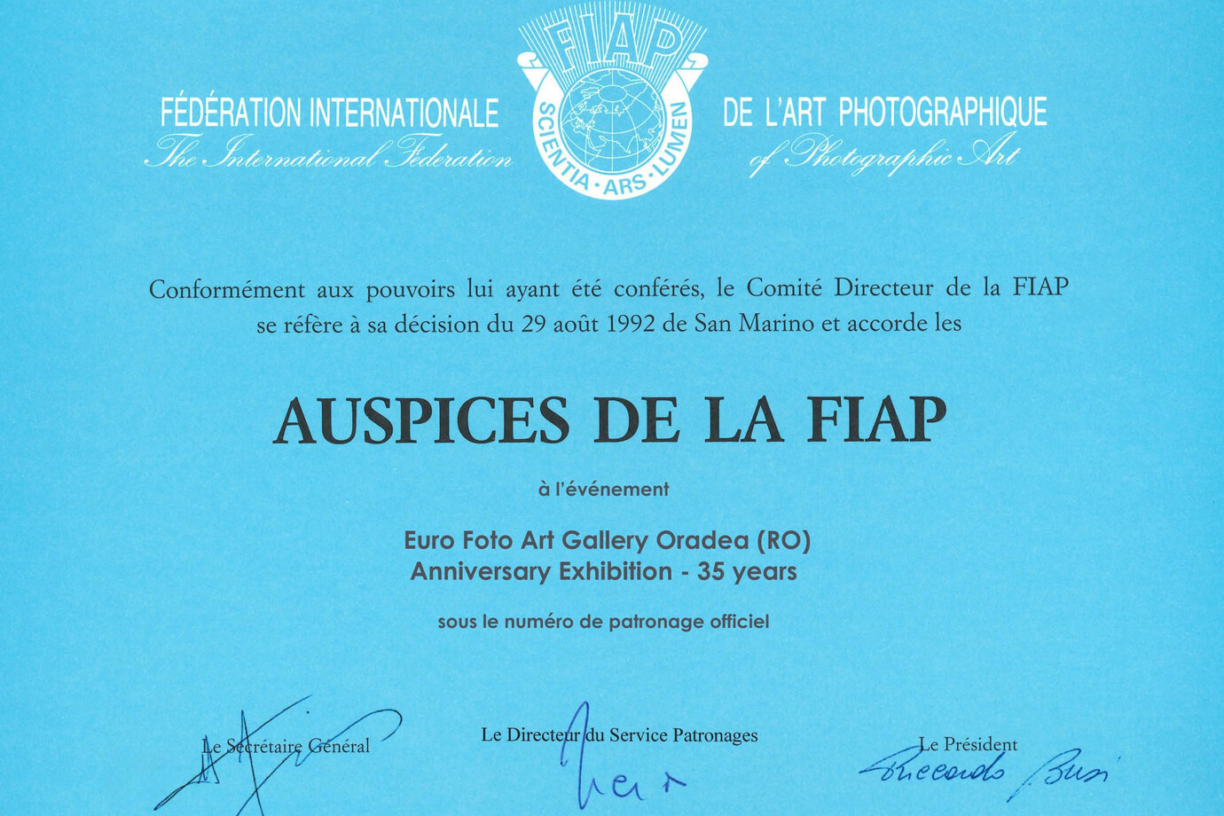 The FIAP Exhibition Center Oradea-Romania, located in the Princely Palace of the Oradea Medieval Fortress (Building E, ground floor), was filled to capacity on Friday, June 26, 2025, on the occasion of the 35th anniversary of Romania’s longest-running permanent photographic art gallery. The celebration brought together over 60 guest photographers from Rzeszów (PL), Cluj-Napoca, Baia Mare, Oradea, Sighetu Marmației, and Târgu Mureș (RO), as well as Budapest (HU). The first part of the anniversary event took place in the “Matei Stegerean” Gallery of the Exhibition Center, where a retro poster exhibition was staged. The audience, attending an event organized in partnership with Summit Agro Romania, was welcomed by photographer Ștefan Tóth István AFIAP, ESFIAP, President of the International Association “Euro Foto Art” (AIEFA). He presented the context in which the Euro Foto Art Gallery was founded and expressed gratitude to all those who have supported the organization of 638 exhibitions by artists from around the world, always open free of charge to the public. Next, Andrei Borbély, Executive Director of the Bihor County Directorate for Culture, highlighted that: “Time has proven that this Gallery has become the Cultural Embassy of Oradea, of our county, and equally of Romania around the world!” Dr. Eng. Patricia Știrbu, President of Summit Agro Romania, praised the partnership established with AIEFA in 2021, which has enabled the promotion of both photographic art exhibitions and the company she proudly leads. Gyula Zatykó, chief organizer of the Saint LadislausDays Festival, emphasized: “It is an honor for us to include such an exceptional anniversary within the Festival’s program.” Art historian and critic Assoc. Prof. Dr. Ramona Novicov remarked that, in her opinion, the Gallery has become “a phenomenon,” managing to present in Oradea more than 60,000 photographs from across the globe. At the close of the first part of the vernissage, the audience was invited to view an exhibition featuring the most representative images from the countless openings organized over the past 35 years. These photographs are also available online athttps://eurofotoart.ro/en/euro-foto-art-gallery-35-years/ Also displayed at the FIAP Exhibition Centerwas a message received from the Presidential Administration, Department for Culture, Religions and Nationalities, which stated: “We deeply value the contribution of the International Association ‘Euro Foto Art’ in promoting photographic art and visual culture. Please accept our highest appreciation and best wishes for continued success in organizing and developing the ‘Euro Foto Art’ Gallery, an important landmark in both the Romanian and international cultural landscape.” The second part of the celebration took place at the “Millesime” Center for Wine Culture and Civilization, where Member of Parliament Ödön Szabó underlined: “35 years of activity! Ștefan Tóth István does not dig chasms between people, but fills them, cultivating bridges through culture. Even as a simple civilian, he is a true cultural diplomat. Through all his endeavors, he manages to bring together people who otherwise might never have exchanged a greeting. I would dare say this is an art in itself – at least as valuable as the art of photography.” On this occasion, a 136-page jubilee catalog, published by Euro Foto Art Publishing House, was also launched and can be browsed online: https://online.flipbuilder.com/eurofotoart/crof/ A multimedia presentation also unveiled rarely seen images documenting the behind-the-scenes work that made these results possible. The musical program of the anniversary was offered by those who, over the decades, have performed at the gallery’s vernissages: representatives of the Sola Fide Community and Cultural Association, ThurzóSándor József (viola), Rock Filarmonica Oradea, Alexandrina Chelu Schorr (voice) & Florian CheluMadeva (guitar), and Prof. Georgiana-Iudita Mircescu & Quai Chiara (flute). A series of congratulatory messages also arrived from photographers in Africa, India, Japan, the USA, Moldova, Romania, Ukraine, and Hungary. The exhibition will remain open to the public until July 24, 2025, on weekdays between 8:00 AM – 4:00 PM, with free admission. Thanks to a partnership between AIEFA and OTL SA, the exhibited photographs will also be displayed on the screens of modern public transport vehicles in Oradea.