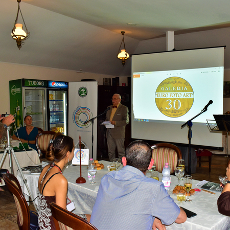 The photographer Ștefan Tóth AFIAP presented the history of the 3 decades of existence of the gallery, backed up by a gallery of pictures. During the event, other guests held speeches: Ramona Novicov PhD. - art critic, Eugen Moritz PhD. from Cluj Napoca and Attila Hágó PhD from Carei - president of the “Vasile Vénig László” Photo Club. Ștefan Tóth AFIAP presented over 30 jubilee plaques and 6 FIAP special medals to those that have permanently supported the “Euro Foto Art” Gallery. Among the recipients of the FIAP special medal were: Bihor County Council, Oradea City Hall, senator Ödön Szabó, Dr. Ramona Novicov - art critic, Lucian Malița and Thurzó Sándor József.