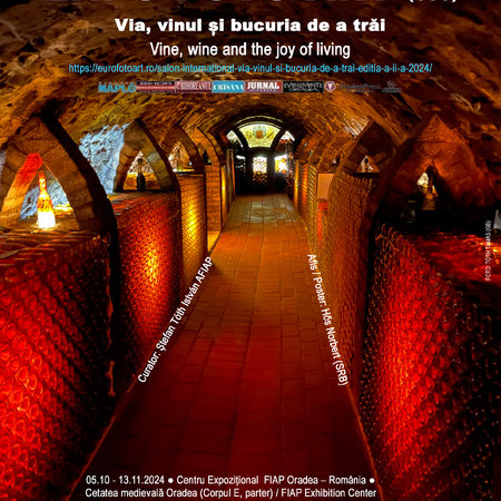 On Saturday, October 5 2024, the Center for the Culture and Civilization of Taste in the Medieval Fortress of Oradea (Building I) hosted the opening of the International Salon of Photographic Art “The Vine, Wine, and the Joy of Living”, the award ceremony, and the launch of the album of the same name, published with the financial support of Summit Agro Romania and edited by Euro Foto ArtPublishing House. The album can also be browsed online on the Association’s website: https://eurofotoart.ro/via-vinul-si-bucuria-de-a-trai-2024/ The photographic art exhibition, organized by the International Association Euro Foto Art and Summit Agro Romania in partnership with the Association for the Culture and Civilization of Wine Millesime, under the auspices of the International Federation of Photographic Art (recognized by UNESCO), was composed of the accepted and awarded works from the international competition. All the images can be admired in the Galleries of the EFA Exhibition Center at the Princely Palace of the Medieval Fortress of Oradea (Building E, ground floor). The audience present at the event dedicated to the National Day of Romanian Gastronomy and Wine was greeted by the host, Dr. Eng. Patricia Maria Știrbu, President of Summit Agro Romania and the Balkans: “We wish this event to be a celebration of autumn, of harvest, of photographic art, of the vine and of wine. An artistic feast in the spirit of the blessings brought by grapes and wine. A feast of our encounter.”. Photographic artist Ștefan Tóth István, AFIAP, ESFIAP, President of AIEFA and chairman of the jury, thanked the awarded photographers and invited those present to meet the laureates: VirgilioBardossi EFIAP, MFIAP from Florence (Italy), Tamás Tóth from London (England), Mészáros Ödönfrom Budapest (Hungary), Hős Norbert from Subotica (Serbia), Tudorel Ilie from Baia Mare, and the Oradea photographers Anca Adriana-Andrea, Morvay-Szabó Edina, and Radu Gabor, who were presented with their prizes. The evening was enriched with exceptional musical moments offered by violist Thurzó Sándor József, representative of the Sola Fide Community and Cultural Association (SFKKE); lyrical artists Florina and Florin Mariș Hinsu—professors in the Music Department of the Faculty of Arts at the University of Oradea, who successfully approach various styles with a rich repertoire-and their son, Ionuț Mariș Hinsu, a second-year student at the same Faculty and a national laureate in Classical Singing, who delighted the audience with his extraordinary performance. The international exhibition, displayed across the three Galleries of the EFA Exhibition Center, will remain open to visitors until November 14, 2024, on Mondays and Wednesdays between 2:00 p.m. – 6:00 p.m., and on Tuesdays, Thursdays, and Fridays between 10:00 a.m. – 2:00 p.m. Admission is free! The exhibited photographs will also be featured on the screens of public transport vehicles in Oradea, thanks to the agreement between AIEFA and OTL S.A.
