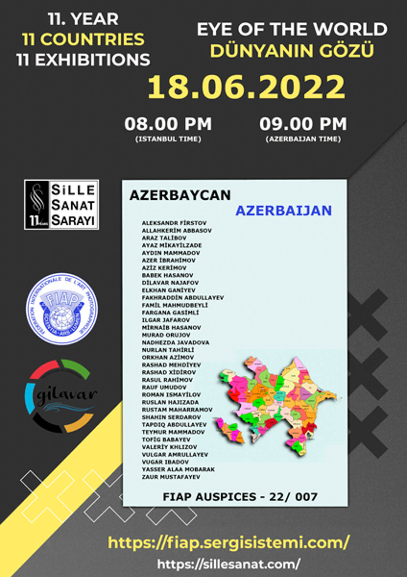 As part of its 11th anniversary, Sille Sanat Sarayı continued its “11 Exhibitions with 11 Countries” project with Azerbaijani photographers. The sixth exhibition of the projectfeatured 35 members of the Azerbaijan Gilavar Photography Association, presenting 35 photographs. The exhibition brought together photographers around a work by Azerbaijani photographerCenab Rashad Mehdiyev, and also included a photograph by Ruslan Hajızada, a memberof Sille Sanat Sarayı. This collaboration highlighted the spirit of international exchange andartistic cooperation at the heart of the project. The photography exhibition, held under FIAP Auspices patronage, is presented in Sille Sanat Sarayı’s virtual exhibition hall and will remain open to visitors for one year. https://fiap.sergisistemi.com