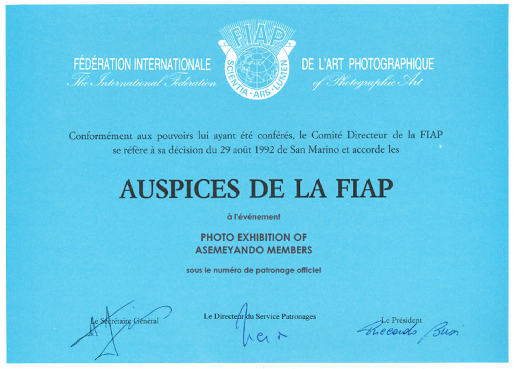 This exhibition is opened with FIAP AUSPICES patronage.