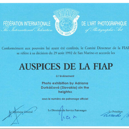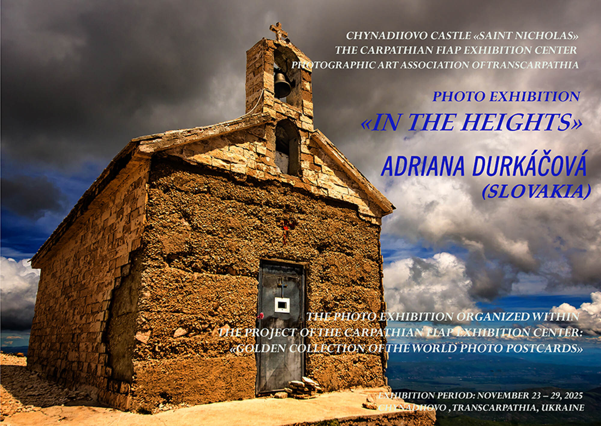 Creative Union «Photographic Art Association of Transcarpathia» within the framework of the project of The Carpathian FIAP Exhibition center «Golden collection of the world photo postcards» has opened in Chynadiiovo Castle «Saint Nicholas» the photo exhibition of Adriana Durkáčová (Slovakia) «In the heights». A photo exhibition by a famous Slovakian artist was presented at the «Gallery of One Picture».
