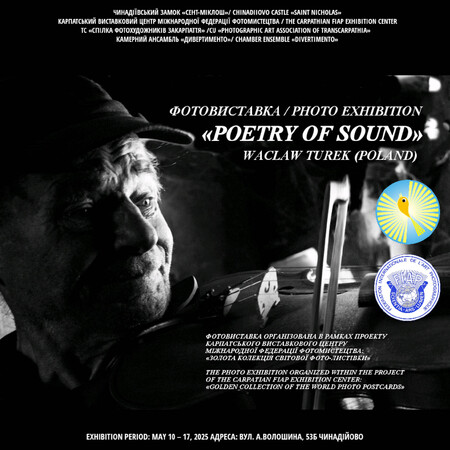 Creative Union «Photographic Art Association of Transcarpathia» within the framework of the project of The Carpathian FIAP Exhibition center «Golden collection of the world photo postcards» has opened on the 10th of May in Chinadiiovo Castle «Saint Nicholas» the exhibition «Sound melody». The photo exhibition by a Polish artist – poet, musician and photographer, was presented at the «Gallery of One Picture». The author of the photo, professing two life principles: «There is no life without passion» and «To the people - through the people», offered the emotion of the presented photo.