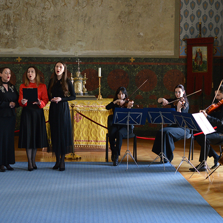 Folk amateur ensemble, specialised on the folk songs named "Rozmaria", accompanied by a string quartet of the chamber orchestra of the Zakarpattya Regional Philharmonic, gifted the present composition "Prayer for Ukraine" (the words by Fedir Norba (1928 – 2016), the music by Ivan Ladyka (1937 – 2007). The event was organized by the Photographic Art Association of Transcarpathia and Uzhhorod Museum of Local Lore named after T. Legotsky within the framework of the project "Ukraine will overcome the evil empire". The exhibition will be exhibited in the Carpathian FIAP Exhibition Center in Uzhhorod Museum of Local Lore named after T. Legotsky until May 20, 2022.