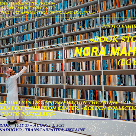 Creative Union «Photographic Art Association of Transcarpathia» within the framework of the project of The Carpathian FIAP Exhibition center «Golden collection of the world photo postcards» has opened on the 27th of July in Chynadiiovo Castle «Saint Nicholas» the exhibition of Nora MAHER «Book Store». A photo exhibition by an Egyptian photo artist was presented at the «Gallery of One Picture».