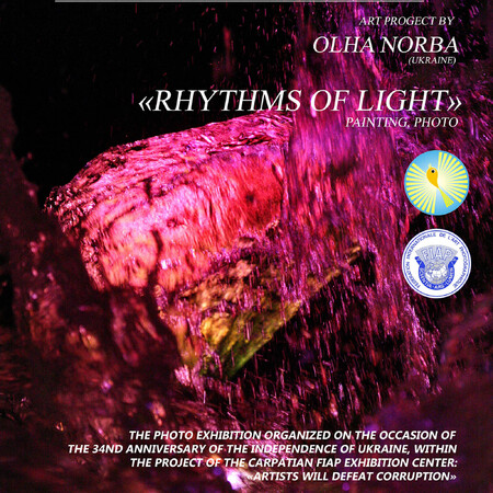 On the occasion of the 34th anniversary of Ukraine’s Independence, the Creative Union "Photographic Art Association of Transcarpathia", within the framework of The Carpathian FIAP Exhibition Center project “Artists Will Defeat Corruption”, presented Olha NORBA’s (Ukraine) art project “Rhythms of Light” on August 23 in Chynadiiovo Castle „Saint Nicholas”. The exhibition featured 23 paintings and 9 photographs, the result of an artistic exploration into the harmony and rhythm of light.