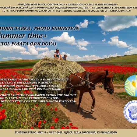 Creative Union «Photographic Art Association of Transcarpathia» within the framework of the project of The Carpathian FIAP Exhibition center «Golden collection of the world photo postcards» has opened on the 30th of May in Chinadiiovo Castle «Saint Nicholas» the exhibition of Anatol POIATA «Summer time». The photo exhibition by a Moldovan artist was presented in the «Gallery of One Picture».