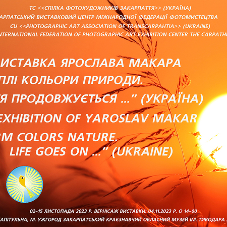 CU «Photographic Art Association of Transcarpathia» have presented in the Carpathian FEC as part of the photographic and local history project «My little Motherland» the photo exhibition «Warm colors in nature. Life goes on...». The author of the exhibition is Jaroslav Makar, who desired to share his vision of a surrounding world and love for his Motherland Ukraine, which inspired the artist to create this exposition, presented in The Carpathian FEC. The main goal of the exhibition, which consists of 42 photographs, is to improve the psycho-emotional state of Ukrainians, who are fighting today for their right to live. For the last two years photographer has been participating in the International Salons under the FIAP Patronage. The vernissage was held on November 2nd and the exhibition will last till November 15th, 2023.