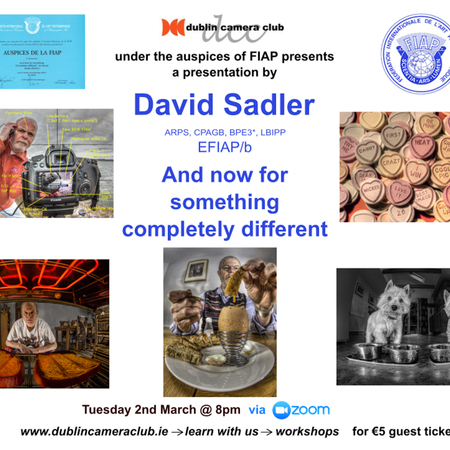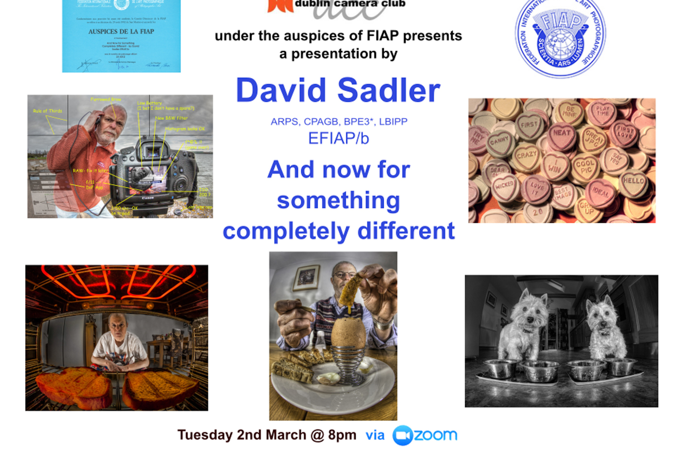 The FIAP Exhibition Centre Dublin was thrilled to visited online via Zoom by David Sadler on Tuesday 2nd March 2021. We were joined by 90 people – members of the Dublin Camera Club and guests – who were entertained by David who showed us a great range of images.