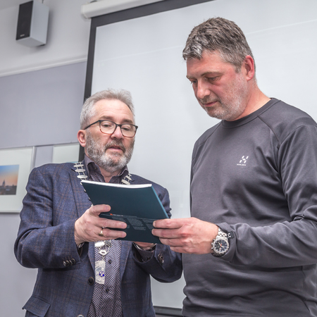 At the end of the evening the Club President Tony Davis presented Achim with a copy of the Dublin Camera Club 70thAnniversary commemorative book.