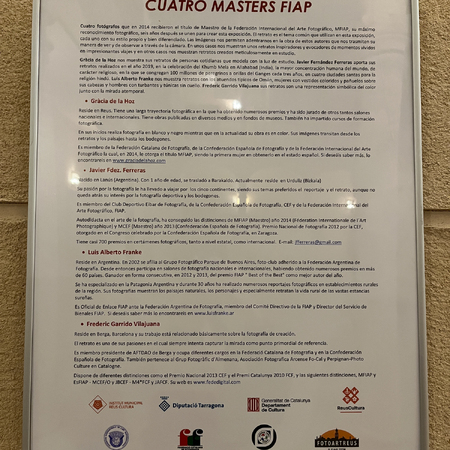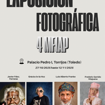 Four photographers who, in 2014, received the title of Master of the International Federation of Photographic Art, MFIAP—its highest photographic distinction—joined forces six years later to create this exhibition. Portraiture is the common theme they use in this show, each with their own unique and distinct style. The images allow us to delve into the work of these artists who convey their way of seeing and observing through the camera. In some cases, they show us inspiring and evocative portraits of moments experienced during impressive journeys, and in other cases, they present meticulously crafted studio portraits.