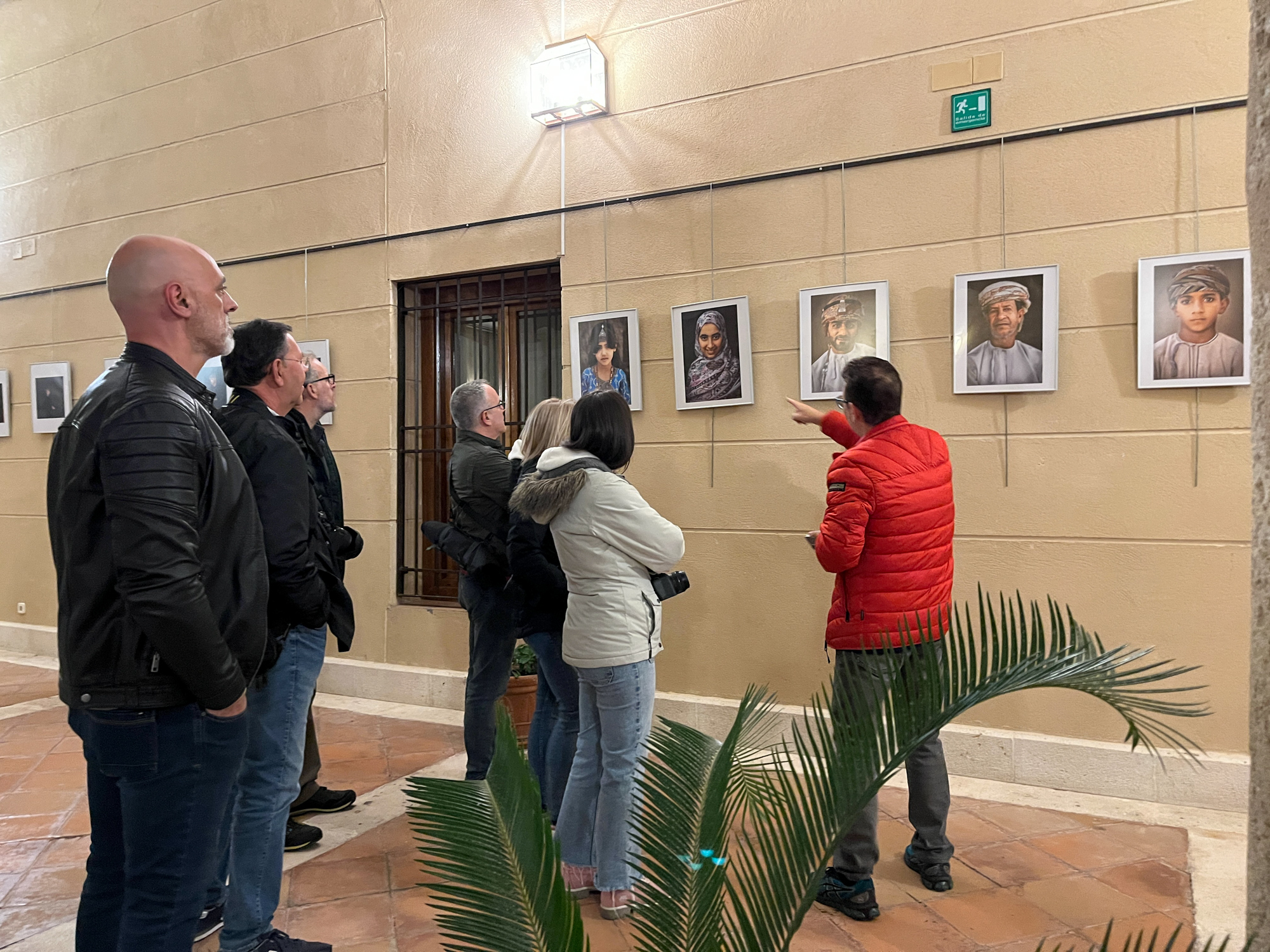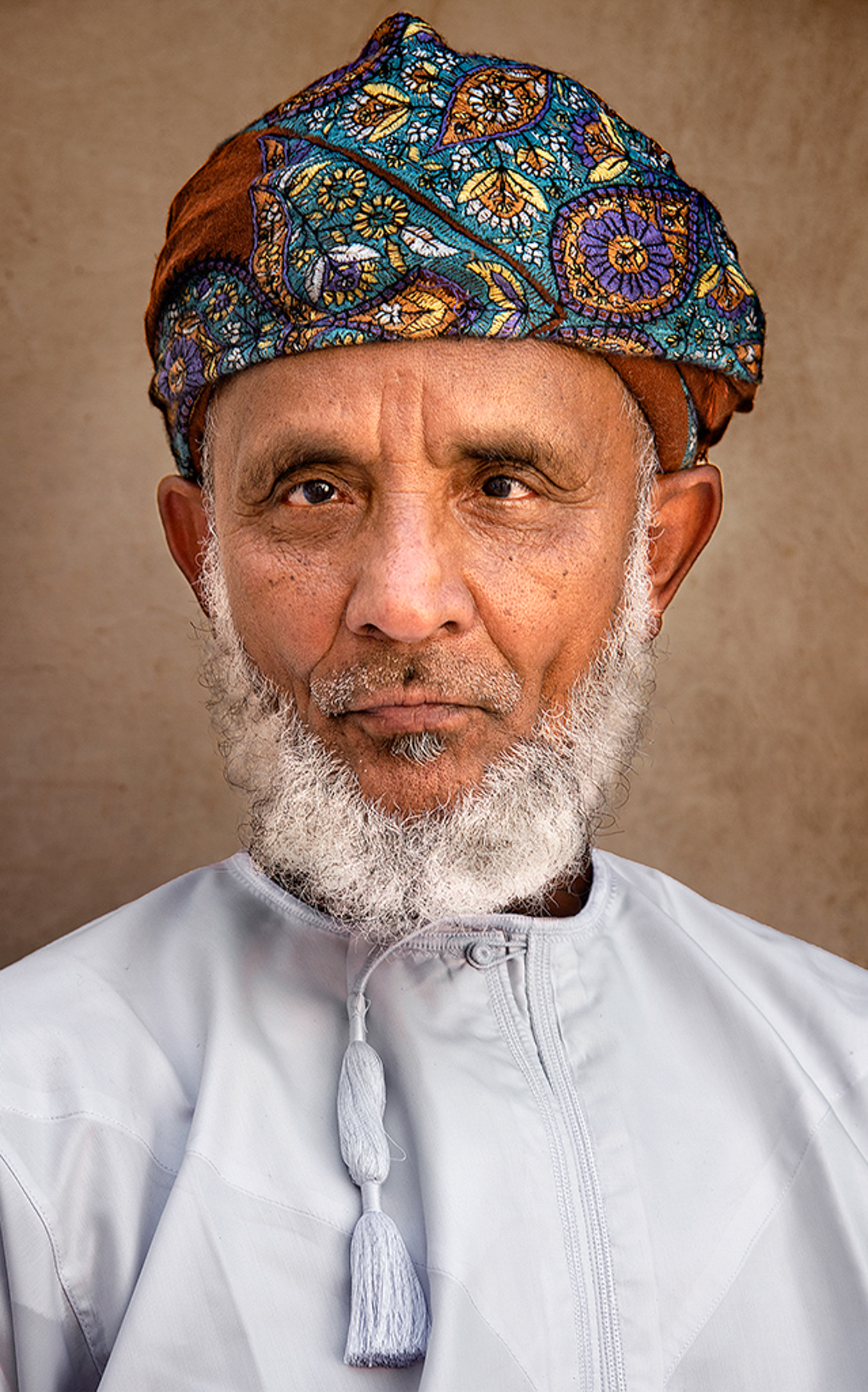 Luis Alberto Franke showcases portraits with traditional Omani attire: women in colorful dresses and headscarves, and men in turbans and collarless robes.