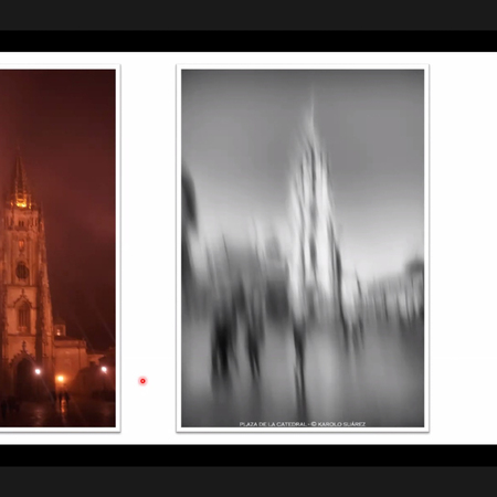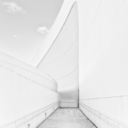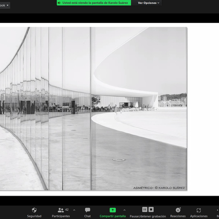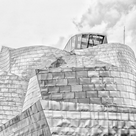 composed of 30 works in black and white whose theme is architecture, of large and modern buildings such as the Niemeyer Cultural Center in Avilés, the Oviedo Conference Center known as the “Calatrava”, the Guggenheim Museum in Bilbao, or the Cultural Center of Monte Gaiás in Santiago de