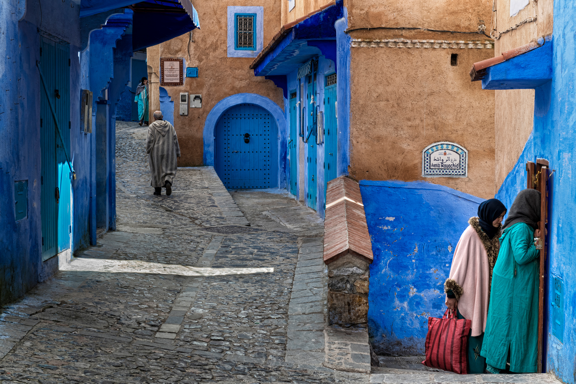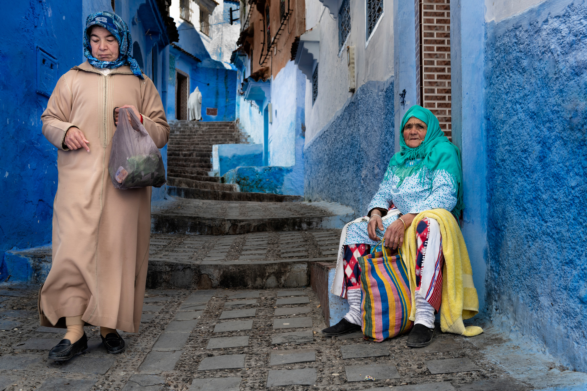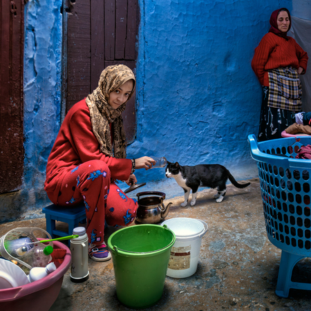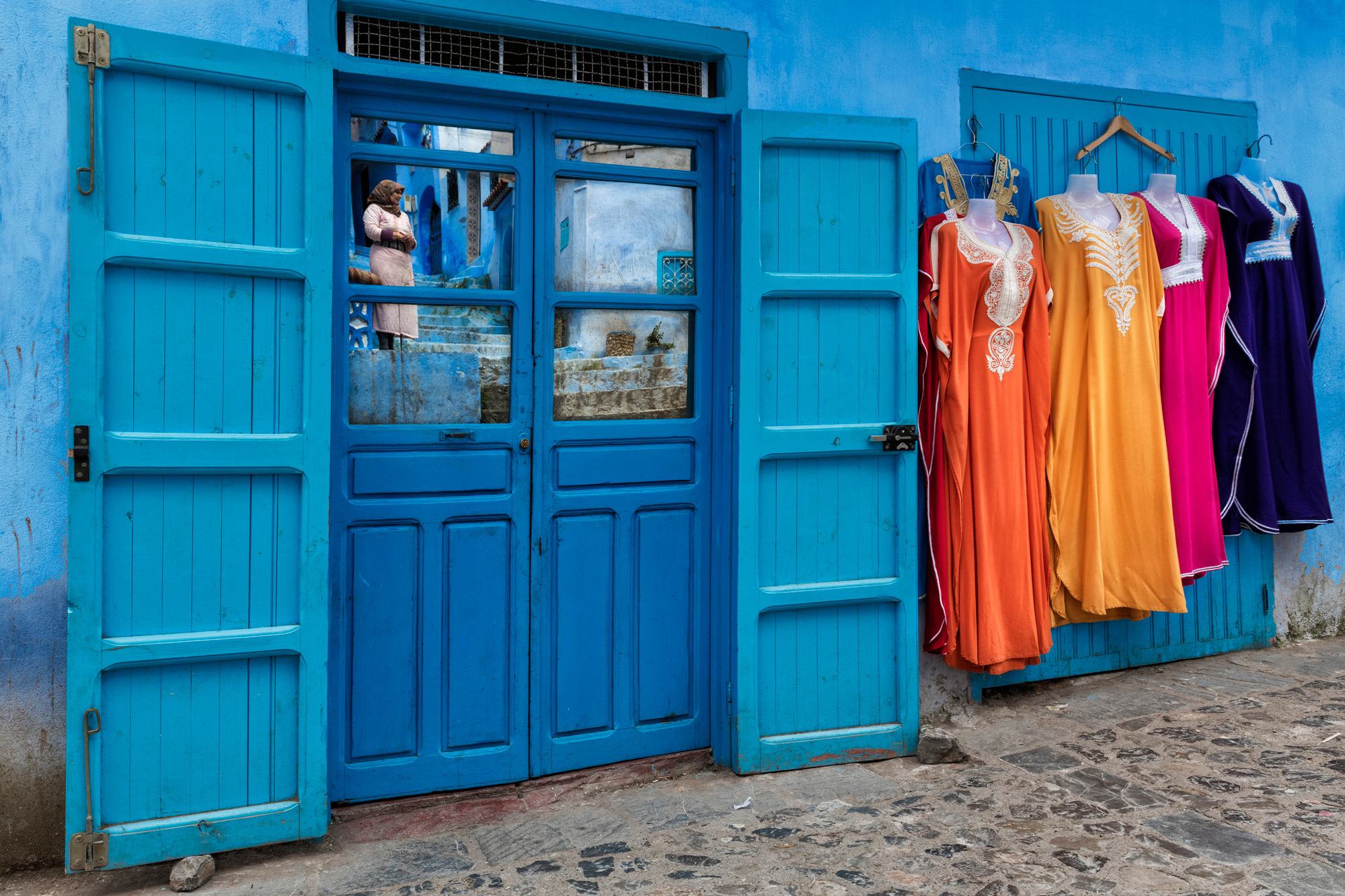Lose yourself among the infinite shades of blue in the streets of Chefchaouen, in its Medina that climbs up the mountain, among alleys, houses and visions from a blue dream. Walls, doors, windows and balconies, but also narrow streets and stairways, shops, fountains and flower pots: it is all a palette of infinite blues, like an ancient ocean where you can sail freely and lose yourself. Chefchaouen has a special charm, made up of discretion, courtesy and hospitality. Its blue, a noble colour, and all its thousand shades of Medina give it a relaxed and authentic atmosphere. Hidden among the Rif mountains in the north, long isolated, it has been one of Morocco's best-kept secrets for so long that it is not known for certain when or why the custom of painting buildings blue was introduced. It is said that the city was painted blue by Jews who had taken refuge here to escape persecution in Europe, for whom the colour blue symbolised Paradise. Wandering through its narrow streets, it is impossible not to stop and look into the houses and craft shops that enrich the streets. Cars are not allowed to drive through the streets, leaving children free to play. For centuries, tissues have been woven in the city using wool produced by shepherds, creating the warm hooded djellabas that men and women have always worn to navigate the blue ocean of Chefchaouen's dreams.