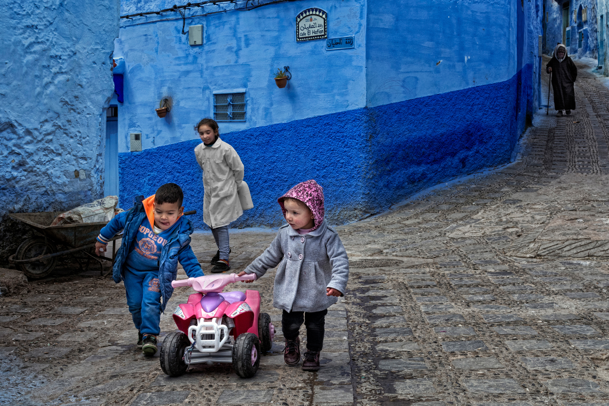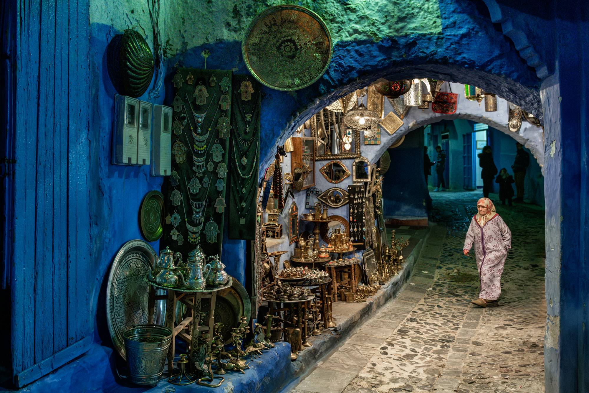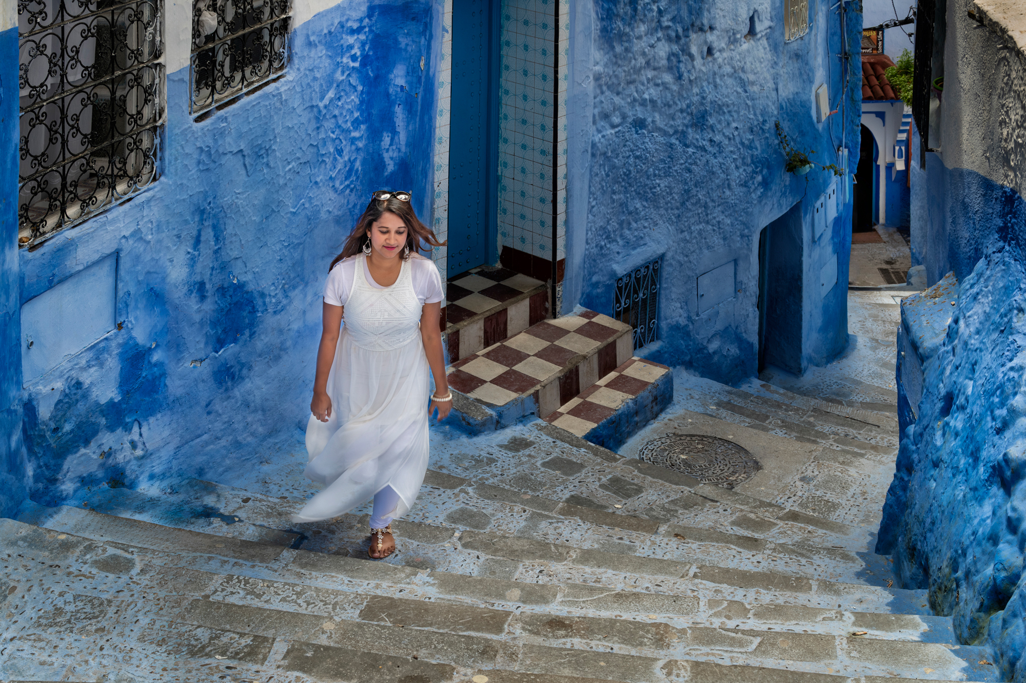 Lose yourself among the infinite shades of blue in the streets of Chefchaouen, in its Medina that climbs up the mountain, among alleys, houses and visions from a blue dream. Walls, doors, windows and balconies, but also narrow streets and stairways, shops, fountains and flower pots: it is all a palette of infinite blues, like an ancient ocean where you can sail freely and lose yourself. Chefchaouen has a special charm, made up of discretion, courtesy and hospitality. Its blue, a noble colour, and all its thousand shades of Medina give it a relaxed and authentic atmosphere. Hidden among the Rif mountains in the north, long isolated, it has been one of Morocco's best-kept secrets for so long that it is not known for certain when or why the custom of painting buildings blue was introduced. It is said that the city was painted blue by Jews who had taken refuge here to escape persecution in Europe, for whom the colour blue symbolised Paradise. Wandering through its narrow streets, it is impossible not to stop and look into the houses and craft shops that enrich the streets. Cars are not allowed to drive through the streets, leaving children free to play. For centuries, tissues have been woven in the city using wool produced by shepherds, creating the warm hooded djellabas that men and women have always worn to navigate the blue ocean of Chefchaouen's dreams.