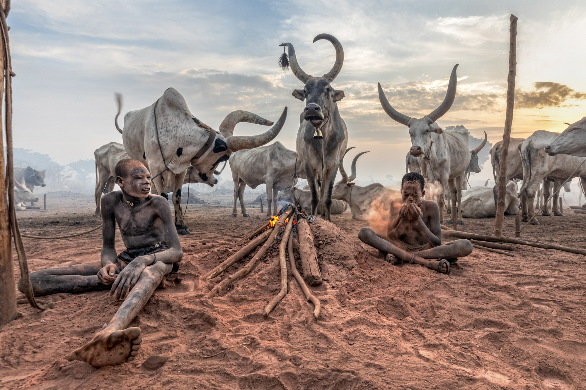 My work as a photographer and their working day begins at dawn, while someone is still resting near thefire,