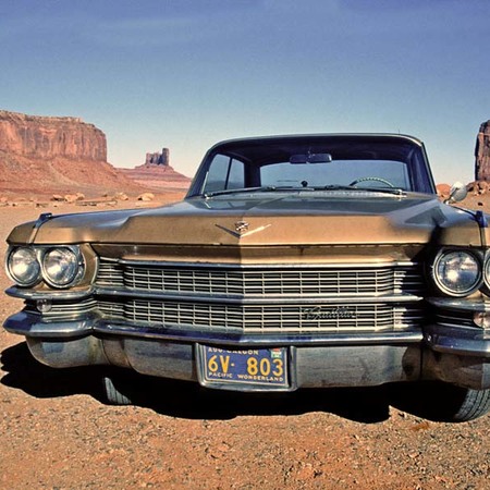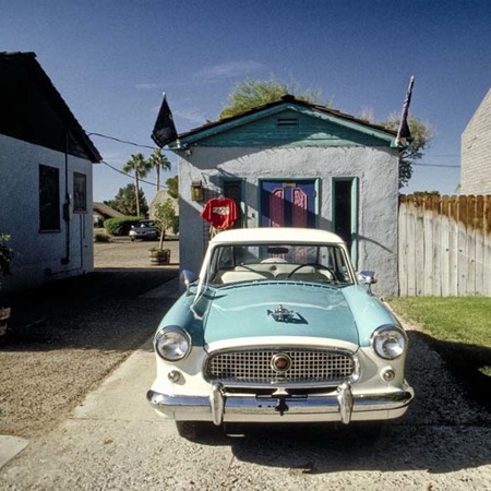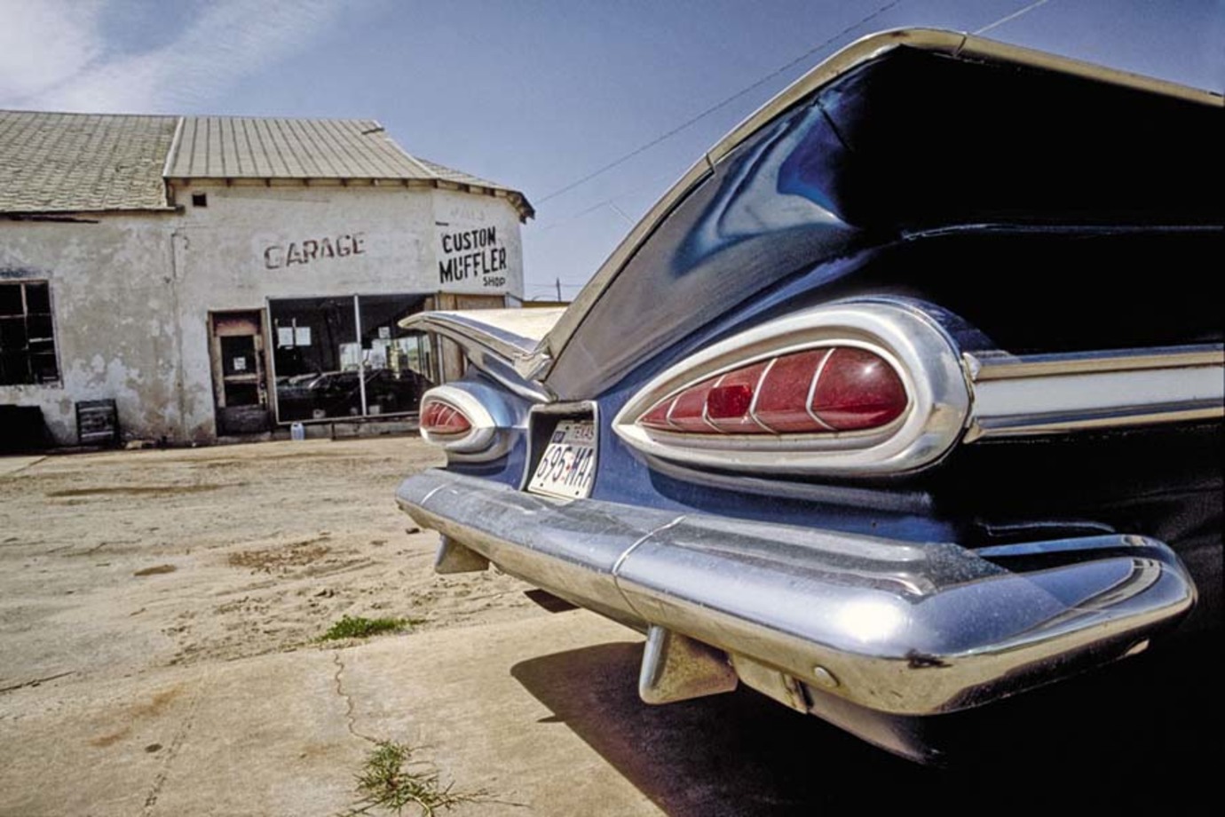 I started this series in 1992 during my first trip on Route 66, a road that crosses the United States from Chicago to Los Angeles. The meeting with a 60’s Cadillac perfectly restored and well exposed in front of a gas station from the fifties, gave me the desire to start in researching these vestiges of the years of glory of American car production. During my travels, professional or leisure, about forty images of these grandmothers with an irreproachable facelift, well insulated in their biotope, as we could say in wild animal photography, came to complete my collection.
