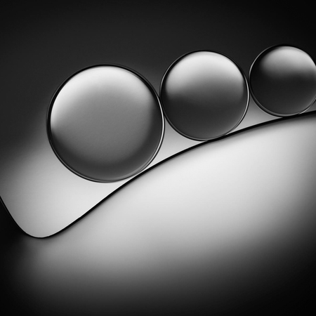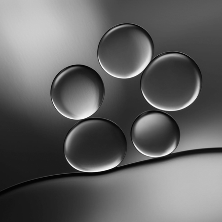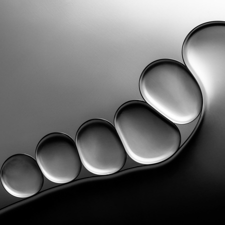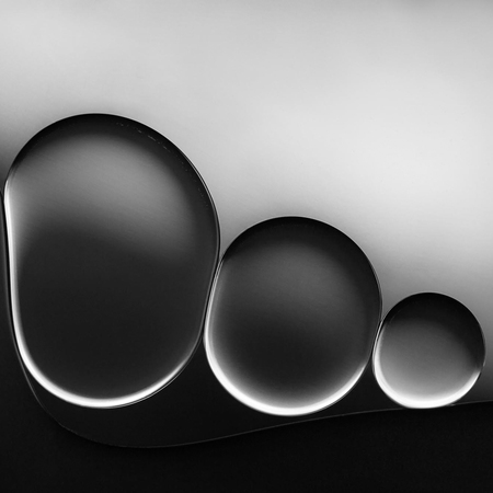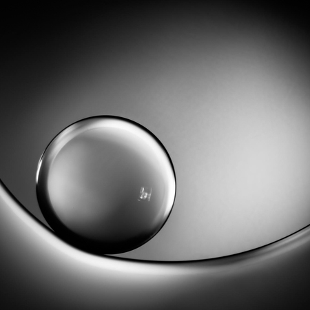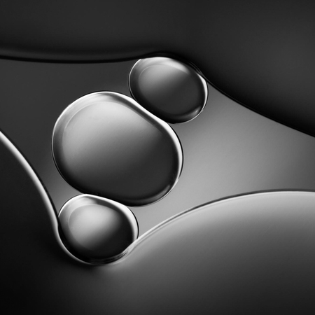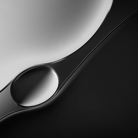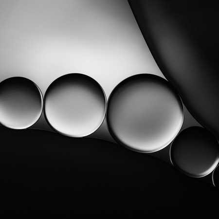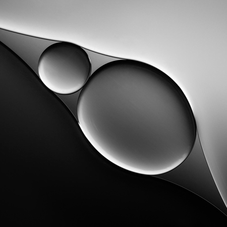 How can liquid bubbles be arranged and controlled? Eight years ago, when I first started doing oil and water photography, I produced images of masses of bubbles forming patterns on the water. With bright coloured paper under the bowl, this did produce vibrant and fun effects. However, I knew there were other styles waiting to be explored. Over time I ventured into minimalist monochrome abstracts to display the essence of abstract photography – light, lines, shape and form. I wanted to draw the viewer in, to get closer, as if they were somehow within the liquid itself. I wanted to create a certain mood or mystery and sense of wonder by using new compositions and light. Most importantly, and without the distraction of colour, I wanted to show how liquids behave, and how they can be controlled in a particular arrangement for a split second but preserved for eternity via the camera.