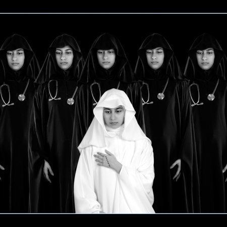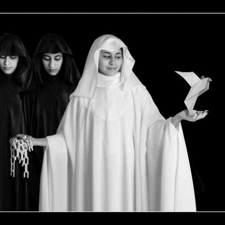 The beginning of a story is a photography project that started eight years ago consisting of fifty artworks so far, and twenty of them were chosen in accordance with the conditions of the FIAP to obtain the title of MFIAP.The beginning of a story photographed in black and white, and a black and white abaya was used (the abaya is a dress that women wear in most Arab countries and their design differs from one country to another and is in black only) as it symbolizes the contradictions that revolve in human feelings, and unwillingness to live In a gray area, and desire to live in either black or white area, in order to clearly define his fate, and it is also a documentation of realistic and painful real events and feelings with a view to re-evoking it and engaging with it and living with those feelings again, as the elements that make up most of the photos were repeated, as a symbol of the re-evocation of This feelings. The beginning of a story that derives its ideas from real events and feelings. Each painting represents a story or a single event in its own right, and when it comes together, it forms one story.