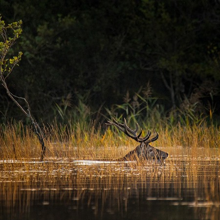 PAUL MADIGAN - IRELAND - Red deer stag crossing lake